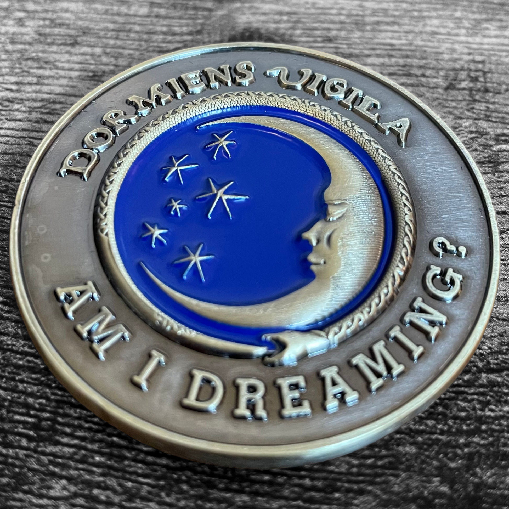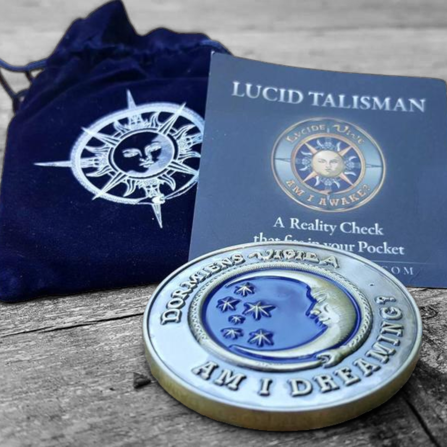 The Lucid Talisman is a unique metal coin that supports your journey towards greater lucidity in waking life and in your dreams. This finely crafted talisman can be combined with mental practices for increasing lucid dreams at night as well as encouraging mindfulness during the day. Also makes for a unique poker guard or book weight. Comes in blue velveteen bag with instruction card and supportive in-depth instruction by email.